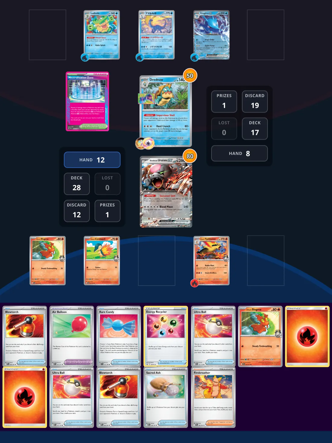 Good news; you're down to one prize card. Bad news; there's a weird turtle in the way. And also, your opponent is cheating. They didn't take a knock out last turn, but they definitely will if you don't finish the game here.